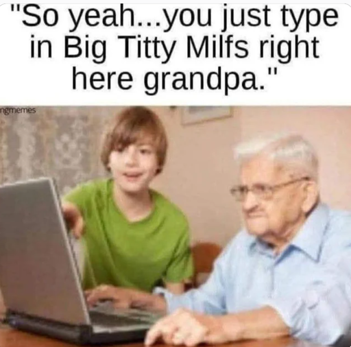 Mickey7@lemmy.world to Lemmy Shitpost@lemmy.world · 3 months agoIt really is heart warming when grandkids teach their grandparents how to use the internetlemmy.worldimagemessage-square25linkfedilinkarrow-up1372arrow-down13