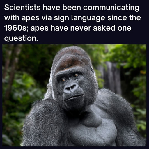 Yeah, the moment I read that, I thought it sounded like bullshit. I doubt there’s a database of every sign language interaction with apes that proves that no ape has ever asked a question.