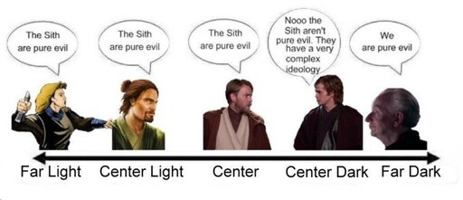 lolol… it’s so like real life… one side is actually helping people, imperfectly if so… the other is dedicated to evil and doesn’t hide it. and people can’t tell the difference fml
