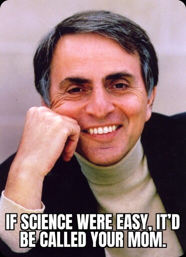 Carl Sagan was cool but I wouldn’t wanna wait around for him to bake a cake from scratch.