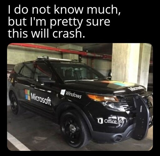 Used to be it might be a BSOD. Today it will still crash because it will distract you constantly by pestering you to try copilot. Or maybe you actually do try copilot and you say “My break time is almost over” and it disables your brakes.