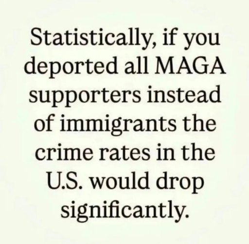 Im not maga, democrat or even american but stats doesnt work like that. USA crime rates would be worse considering the current statistics about involved races in crimes, and i doubt MAGA fanclub members are beloning to the category afroamerican or mexican, no? So the idea falls quite stupidly rather fast, but i get the idea tho.